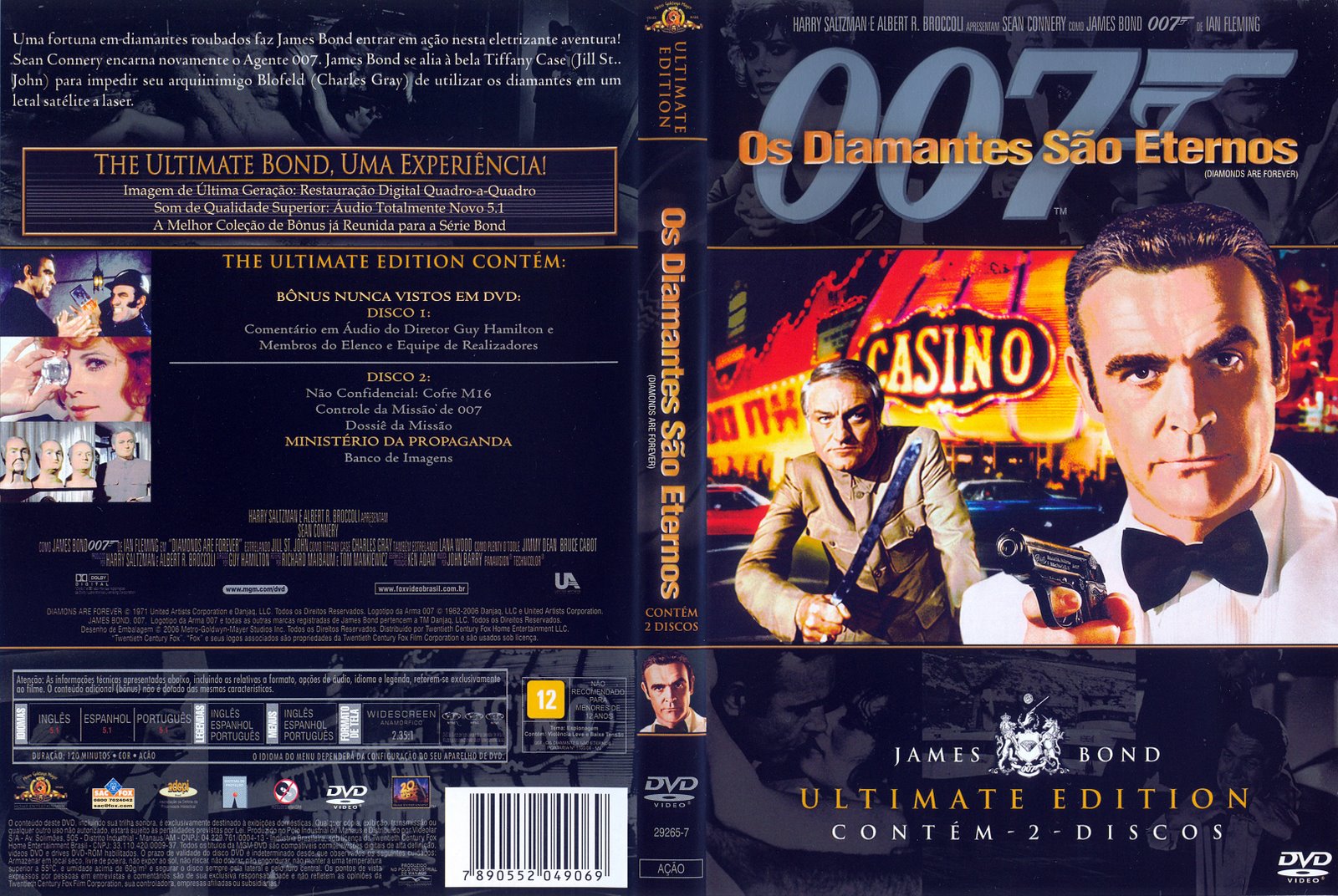 Sinopse: Ao investigar atividades misteriosas no mundo do comércio de diamantes, 007 (Connery) descobre que seu arqui-inimigo Blofeld (Gray, de 007 Só Se Vive Duas Vezes) está armazenando um estoque de pedras para utilizar em seu mortal satélite Laser. Com o auxílio da linda contrabandista Tiffany Case (Jill St. John), Bond prepara uma armadilha para deter o maníaco, pois o destino do mundo está em perigo.