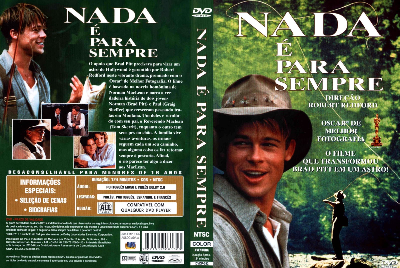 Sinopse: O apoio que Brad Pitt precisava para virar um astro de Hollywood é garantido por Robert Redford neste vibrante drama, premiado com o Oscar® de melhor fotografia. O filme é baseado na novela homônima de Norman MacLean e narra a verdadeira história de dois jovens Norman (Brad Pitt) e Paul (Craig Sheffer) que cresceram pescando trutas em Montana. Um deles é revoltado com o pai, o Reverendo MacLean (Tom Skerrit), enquanto o outro tem seus pés no chão. A família vive várias aventuras, os irmãos seguem cada um seu caminho, mas alguma coisa os faz retornar sempre à pescaria. Afinal, o rio parece ter algo a dizer aos MacLean.