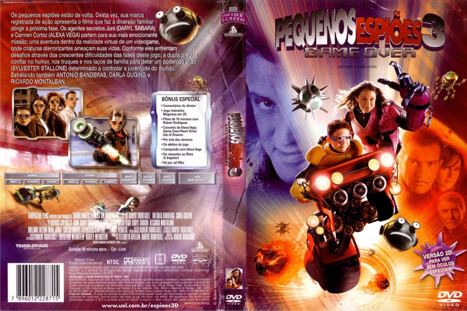 Sinopse: Os PEQUENOS ESPIÕES estão de volta. Desta vez, sua marca registrada de ação vem acompanhada da tecnologia digital de última geração e da vibração do 3-D, para trazer até você o filme que faz a diversão familiar atingir a próxima fase. Os agentes secretos Juni (DARYL SABARA) e Carmen Cortez (ALEXA VEGA) partem para sua mais emocionante missão: uma aventura dentro da realidade virtual de um videogame em 3-D, onde criaturas aterrorizantes ameaçam suas vidas. Conforme eles enfrentam desafios através das crescentes dificuldades das fases deste jogo, a dupla precisa confiar no humor, nos truques e nos laços de família para deter um poderoso vilão (SYLVESTER STALLONE) determinado a controlar a juventude do mundo.